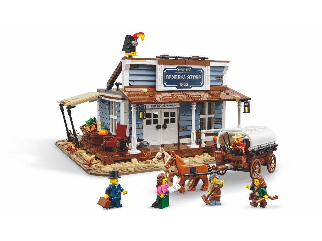 Set obsahuje 1 906 dílků, 5 minifigurek a 2 figurky koní. Tematicky ztvárňuje detailně propracovaný obchod se smíšeným zbožím z prostředí Divokého západu. Charakteristická kombinace sand blue a bílé barvy dodává modelu výrazný a odlišitelný vzhled.