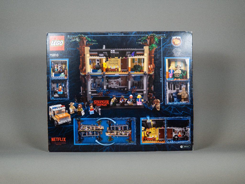 Set obsahuje 2 287 dílků a 8 minifigurek – Will Byers, Mike Wheeler, Lucas Sinclair, Dustin Henderson, Eleven, Joyce Byers, Jim Hopper a ikonický Demogorgon. Výběr postav pokrývá klíčové hrdiny první série a výrazně přispívá k atraktivitě setu na sekundárním trhu.