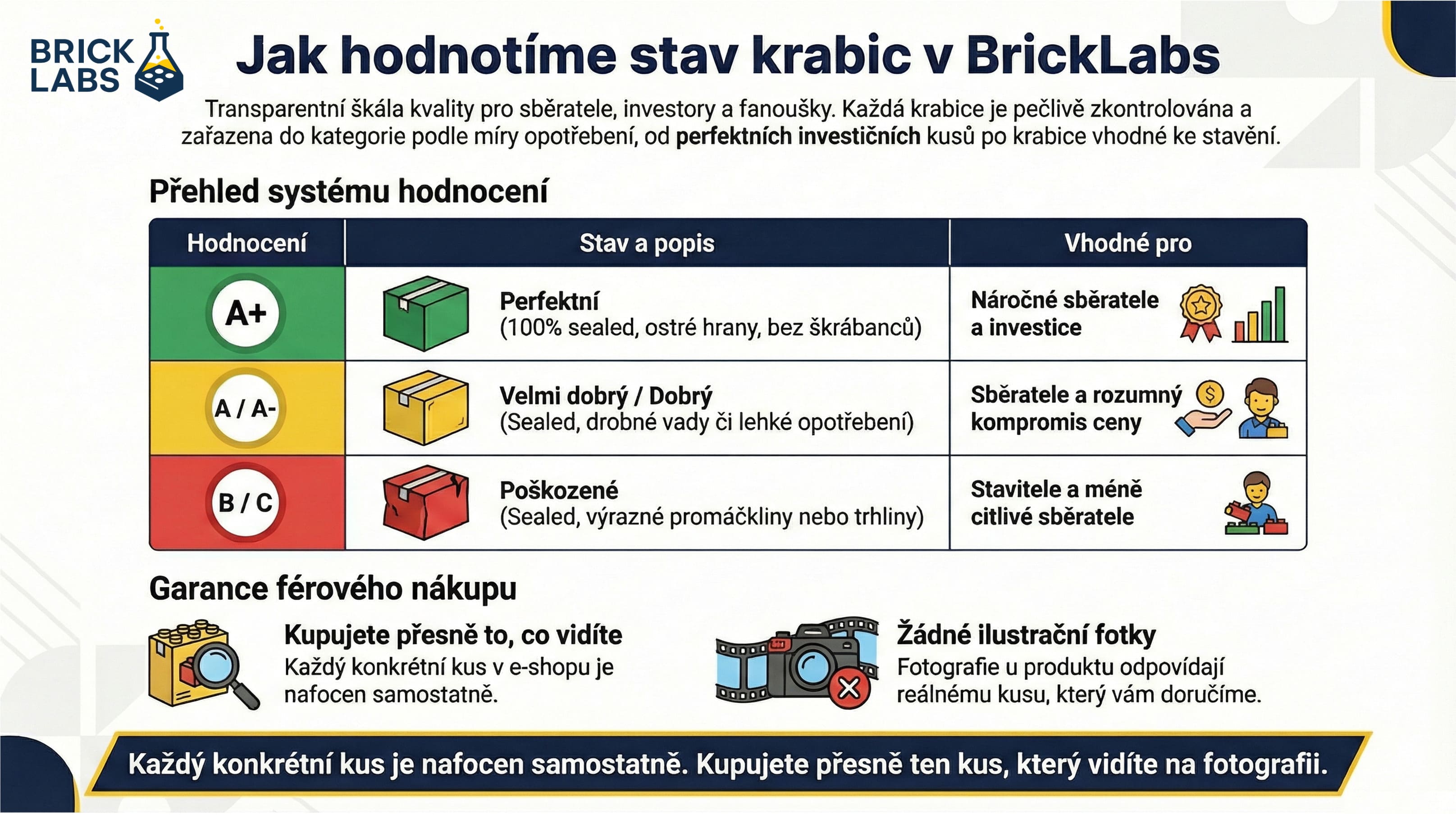 Příliš mnoho obchodů pracuje s ilustračními fotografiemi, neurčitým stavem krabic a nejasnou dostupností.